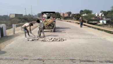 कुकरगांव के पास बने पुल के पहले सड़क में गड्ढा विभाग ने मरम्मत का काम किया शुरू