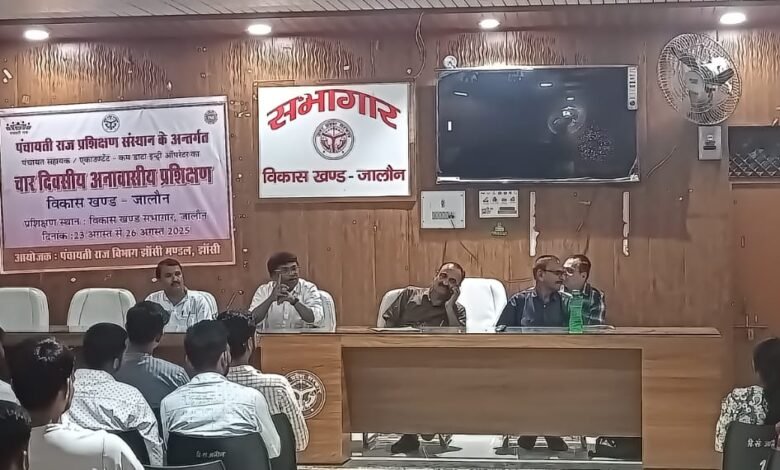 जालौन। क्षेत्र पंचायत कार्यालय में आयोजित पंचायती राज प्रशिक्षण संस्थान का चार दिवसीय प्रशिक्षण मंगलवार को संपन्न हुआ। समापन अवसर पर मुख्य अतिथि के रूप में पहुंचे डीडी पंचायत अजय आनंद सरोज ने पंचायत राज मंत्रालय द्वारा चलाई जा रही योजनाओं और हाल ही में हुए संशोधनों की विस्तृत जानकारी दी।