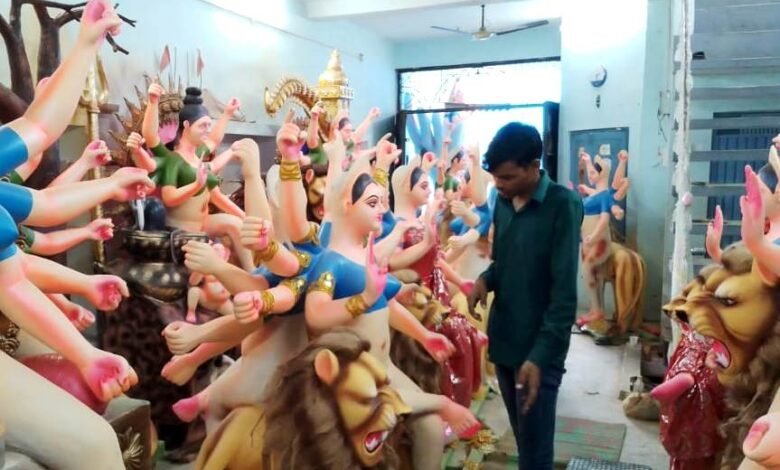 जालौन(उरई)। शारदीय नवरात्र में नगर और ग्रामीण क्षेत्रों में लगने वाली देवी मां की झांकियों में स्थापित होने वाली प्रतिमाओं में विभिन्न रूपों में देवी मां की मूर्तियों को मूर्तिकार अंतिम रूप दे दिया गया है। कल से मूर्तियों की स्थापना शुरू हो जाएगी।