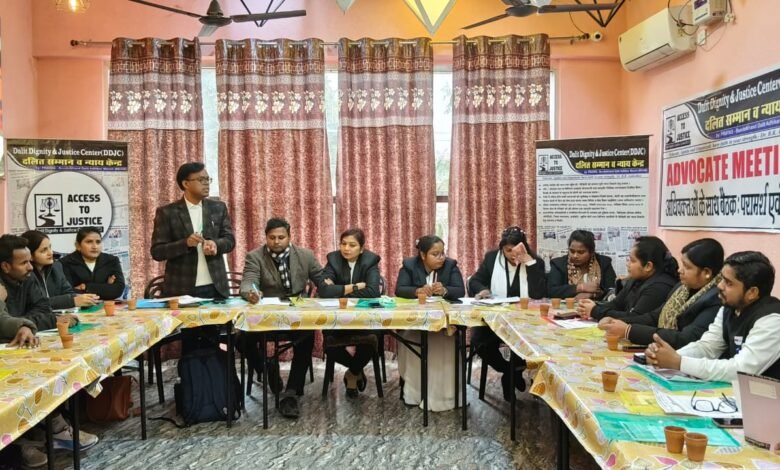 उरई(जालौन)। प्रतेक व्यक्ति को विधिक व क़ानूनी जानकारी हो हर पीड़ित को सम्मान पूर्ण न्याय मिले इसी उद्देश्य को लेकर दलित सम्मान व न्याय केंद्र दुवारा चलाये जा रहे- न्याय तक पहुँच अभियान के तहत जिला न्यायालय के सामने होटल बच्चाराम स्वीट्स में जिले के विभिन्न अधिवक्ताओं(एडवोकेट) के साथ बैठक हुई जिसमे न्याय तक पहुँच अभियान पर जोर दिया गया।