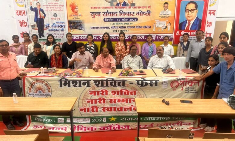 उरई(जालौन)। डा० भीमराव अंबेडकर जी की 135वीं जयंती के अवसर पर दयानंद वैदिक कॉलेज, रामनगर उरई में एक प्रेरणादायी युवा संवाद एवं विचार गोष्ठी का आयोजन किया गया। कार्यक्रम का आयोजन मुख्यमंत्री अभ्युदय कोचिंग योजना के अंतर्गत किया गया, जिसमें मुख्य अतिथि के रूप में सदर विधायक गौरी शंकर वर्मा उपस्थित रहे।
